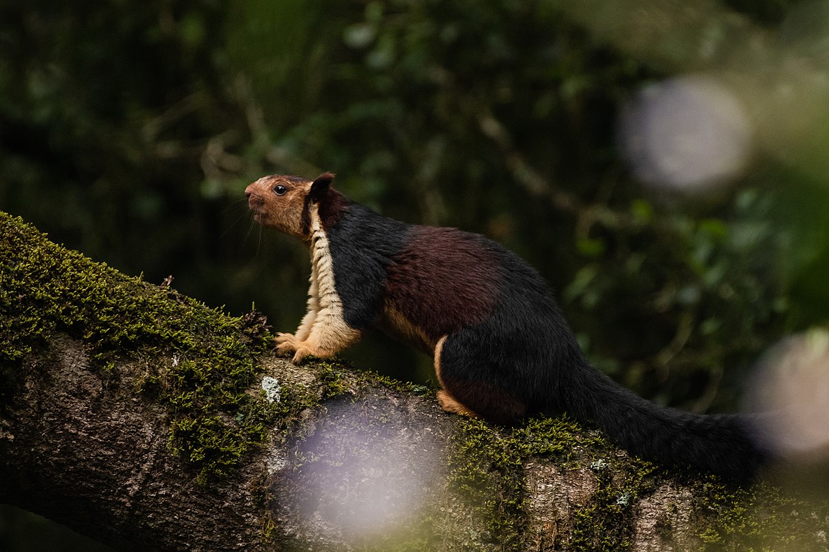 The Giant Squirrel is a large species of tree squirrel found in the forests of India and Southeast Asia. It is known for its impressive size and colorful fur, which can range from shades of red to black. Giant Squirrels are arboreal and feed on fruits, nuts, and leaves. They are an important part of their forest ecosystem, contributing to seed dispersal and forest health.