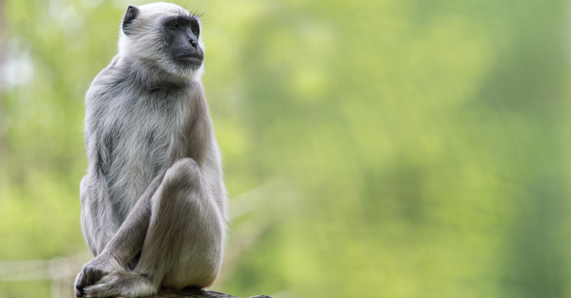 The Hanuman Langur is a species of large, leaf-eating monkey found in India and parts of Southeast Asia. It is known for its distinctive gray fur, long limbs, and large, expressive eyes. Hanuman Langurs are social animals that live in troops and are primarily herbivorous, feeding on leaves, fruits, and seeds. They are an important part of their forest ecosystems and are known for their complex social behaviors.