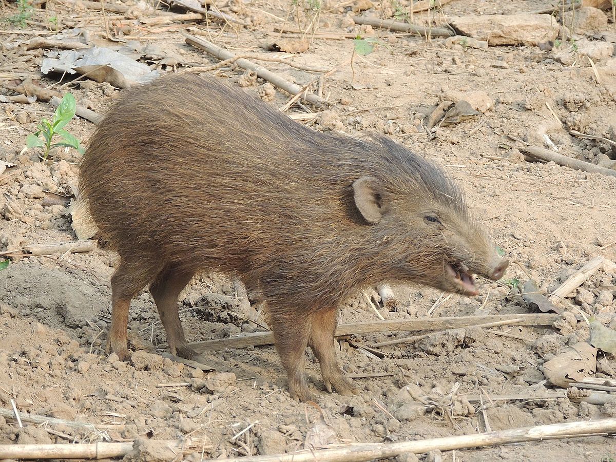 The Pygmy Hog is the smallest wild pig species, native to the grasslands and forests of Assam, India. It is known for its small size, with adults weighing only about 7-9 kg. The Pygmy Hog lives in dense grasslands and feeds on roots, fruits, and insects. It is critically endangered due to habitat loss and poaching, with conservation efforts focused on habitat preservation and captive breeding programs.