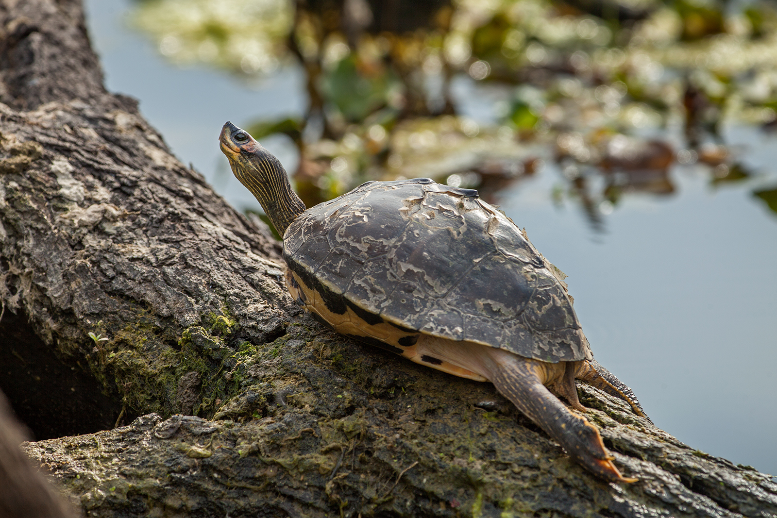 The Roof Turtle, also known as the Indian Roofed Turtle, is a species of turtle native to India and Sri Lanka. It is recognized for its distinctively shaped shell, which has a dome-like appearance. Roof Turtles are primarily herbivorous, feeding on aquatic plants and fruits. They are typically found in freshwater habitats such as rivers and ponds.